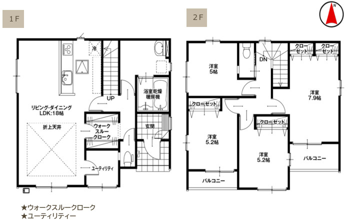1階LDK21.5帖 間仕切り使用で5LDK対応可 - 向き